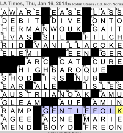 L A Times Crossword Corner Thursday January 16 2014 Robin Stears