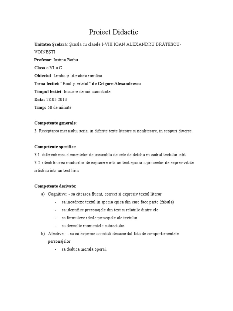 Doc Proiect De Activitate Alina Marcu Academia Edu
