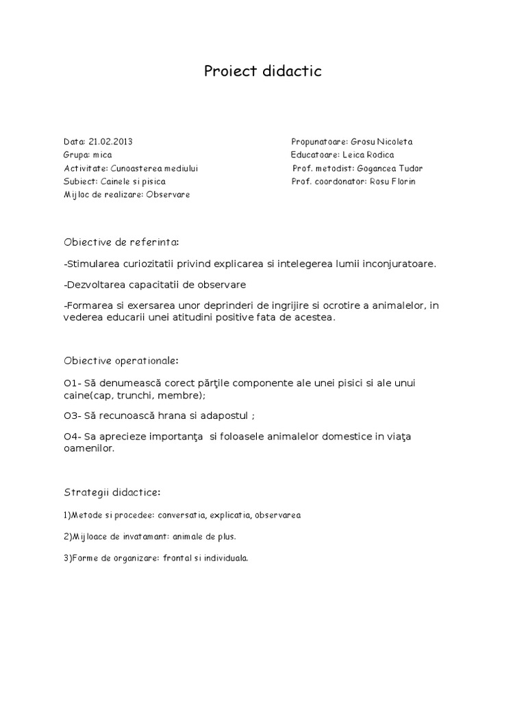 Doc Cainele Si Catelul Proiect Ancuta Bochis Academia Edu