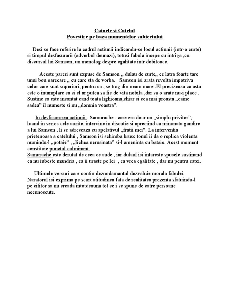 Referat Fabula Cainele Si Catelul 334142 Graduo