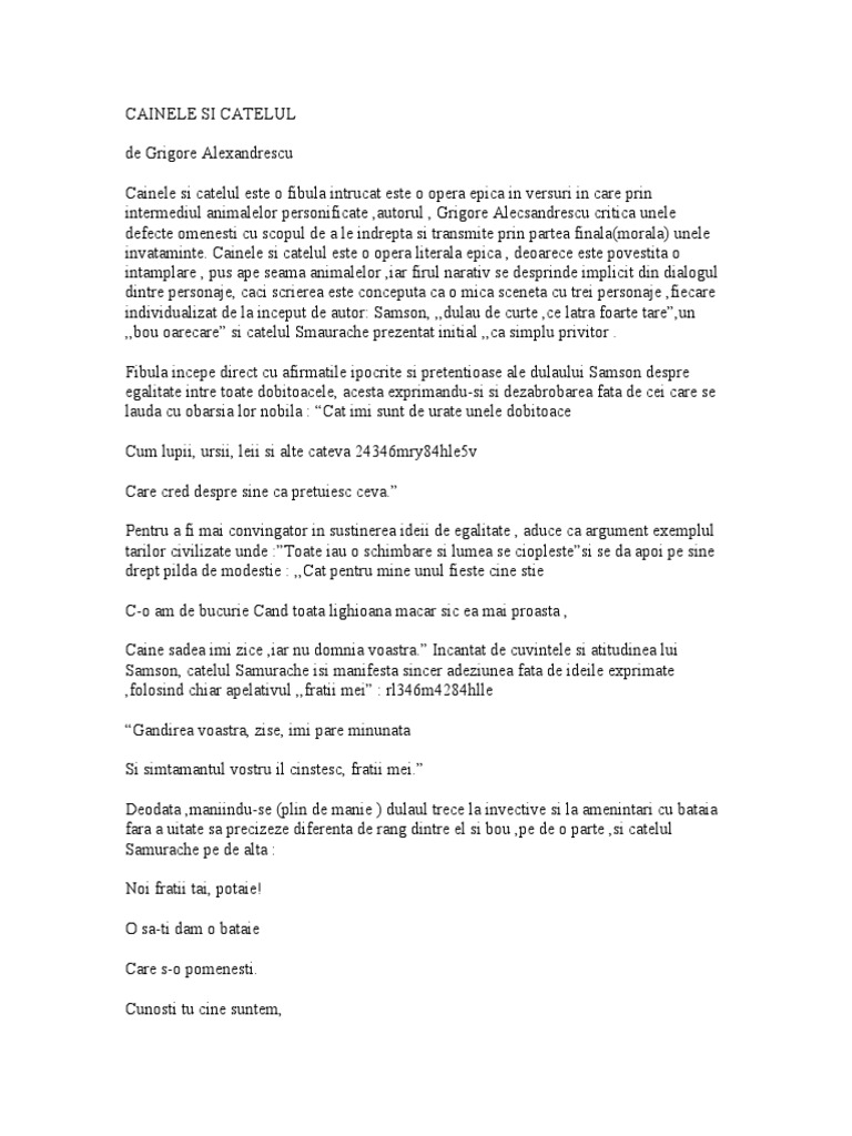 Va Rogggg Mult Lecția Este Cainele și Cățelul De Grigore Alexandrescu Morala Este In Ultimele Brainly Ro