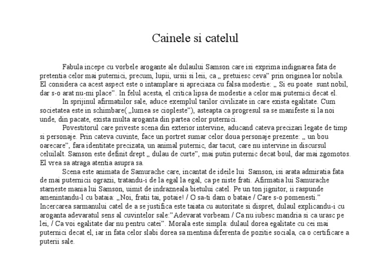 Referat Fabula Cainele Si Catelul 327409 Graduo