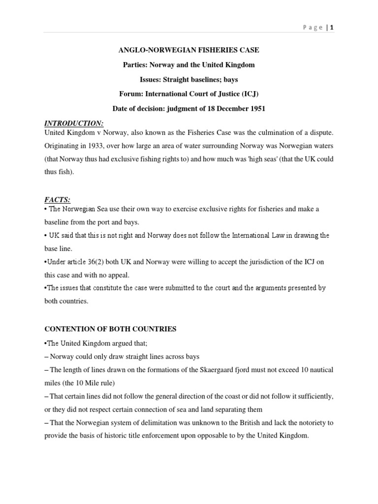 Http Iilj Org Wp Content Uploads 2016 08 Fisheries Case Uk V Norway Pdf