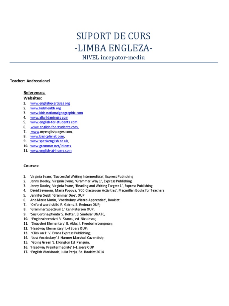 Andreea Ionel Curs Engleza Incepatori 2017 Final 2 Pdf