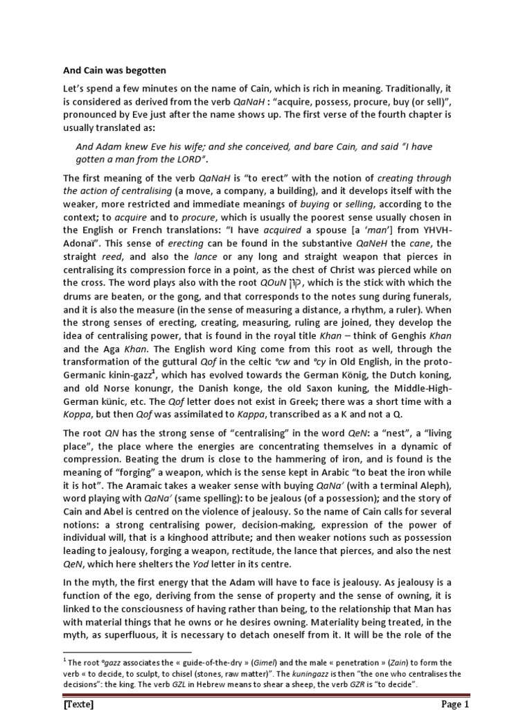 The name cain means. The sentence that his mother eve said when he was born was kaniti ish et hashem which means i bought a man from the lord or i have the asset essence of the lord in my hand. The name cain has four characters. Abel has no posterity. The same name in welsh means beautiful.