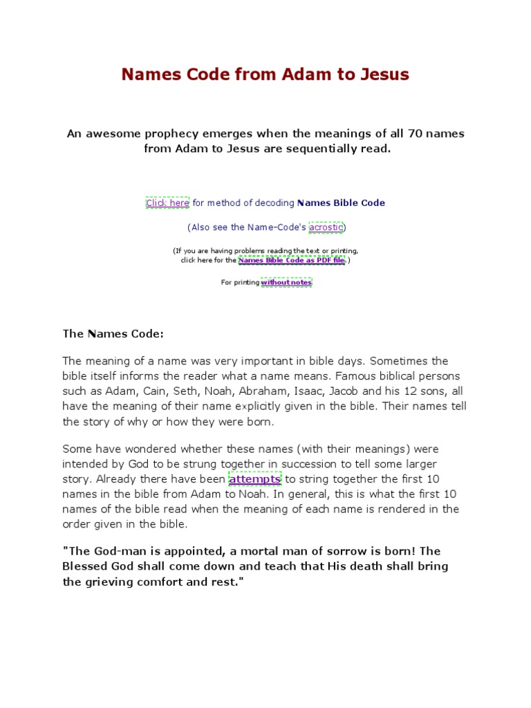 Bible Names Code Names From Adam To Jesus Reads As Single Prophecy