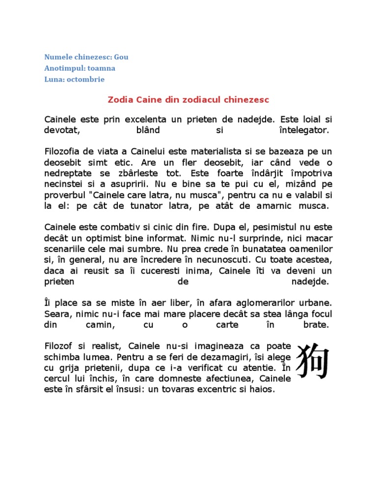Horoscopul Chinezesc Zodia Caine Mayra Ro